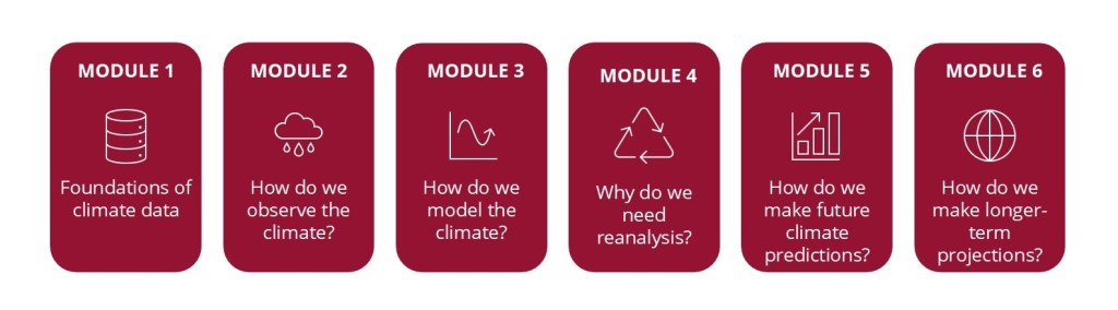 Registration is currently open through the ECMWF Learning platform, where learners can create a free account and enrol in this Climate Data course as well as future mini-MOOCs in the series. Each week from 23 February, a new module will be launched.